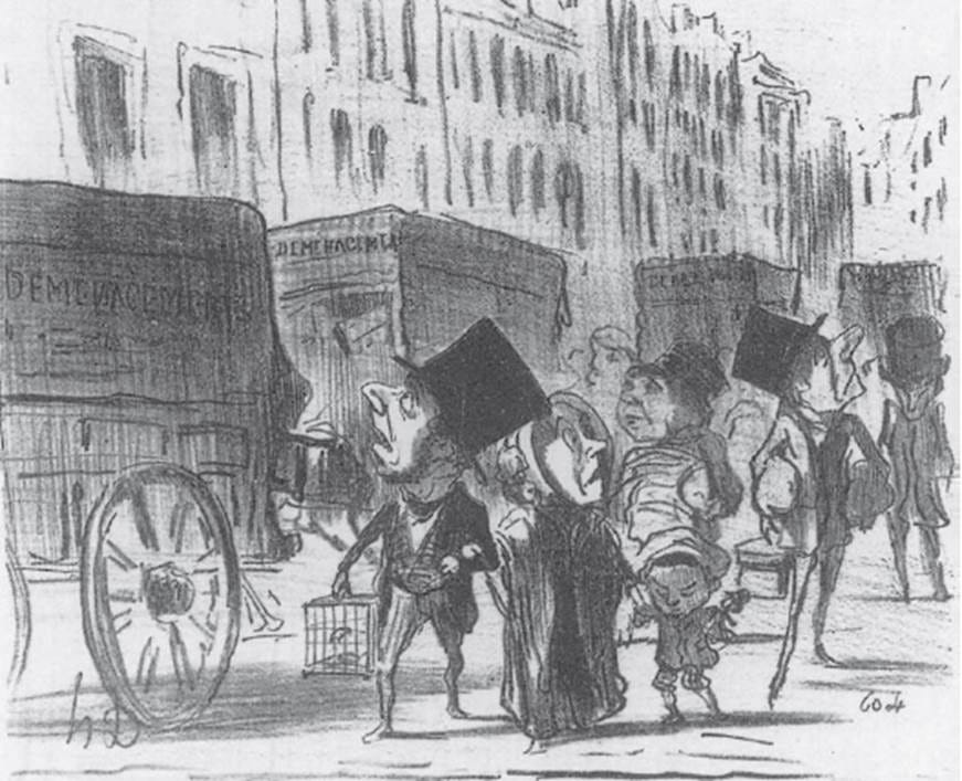 “No obstante, sabemos que esto es un auténtico mito. La realidad es que había habido una amplia discusión sobre este tema y, durante la Monarquía de Julio, se habían realizado esfuerzos concretos (dirigidos por Claude Rambuteau, prefecto de París desde 1833 hasta 1848) encaminados a modernizar la ciudad. Durante toda la década de 1840 se habían discutido innumerables planes y propuestas. El emperador, después de su elección como presidente en 1848, ya había mostrado su disposición hacia las iniciativas de renovación urbana y Berger, el antecesor de Haussmann, había empezado la tarea con decisión. Se estaban ampliando la Rue de Rivoli y la de Saint Martin, y ahí están para demostrarlo las fotografías de LeSecq y Marville, así como los mordaces comentarios de Daumier sobre los efectos de las demoliciones realizadas entre 1851 y 1852, un año antes de que Haussmann tomara posesión del cargo. Incluso el emperador había formado en 1853 una comisión bajo la presidencia del conde Simeon para asesorar sobre proyectos de renovación urbana. Haussmann sostiene que se reunía muy pocas veces y que sólo proporcionaba unos informes internos con unas recomendaciones banales e impracticables. La realidad es que esta comisión se reunía con regularidad y que elaboró un plan complejo y muy detallado que fue presentado al emperador en diciembre de 1853. Haussmann lo ignoraba de manera deliberada, aunque no se sabe lo que pudo influir en el emperador, el cual, por otra parte, le mandaba llamar con mayor frecuencia de lo que éste reconoce. El emperador también le había dado instrucciones, como respetar las estructuras de calidad que ya existieran o evitar las líneas rectas. Haussmann ignoró ambas observaciones. El emperador no mostraba mucho interés en las redes de suministro de agua o en la anexión de los suburbios, pero Haussmann tenía obsesión con esos dos temas y se salió con la suya. Sus Mémoires, que hasta la fecha han servido de base a la mayoría de los relatos, están llenas de engaños.”